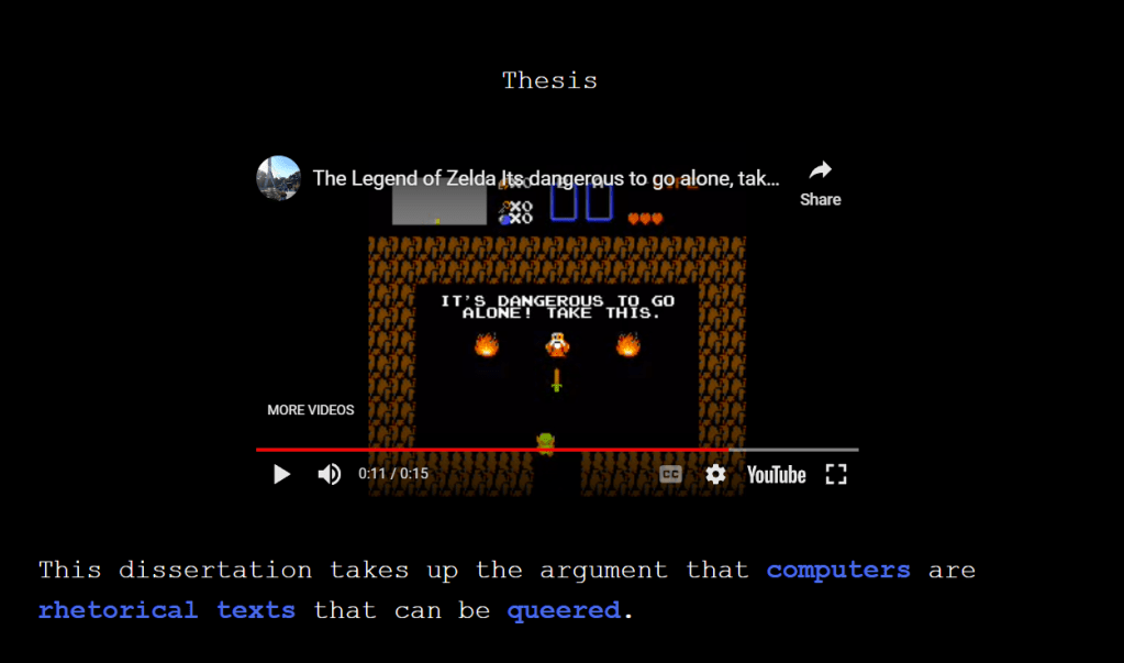Computers Can’t Get Wet is a playable version of Avey’s viva (University of Pittsburgh, April 2020). The full dissertation can be found here. (Let’s amp up that h-index, am I right?)